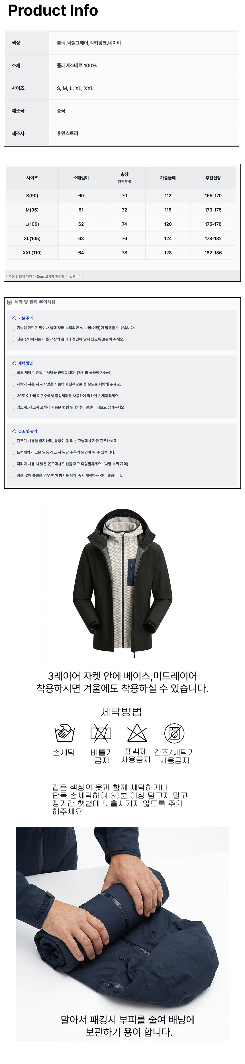 | 세탁방법 및 취급시 주의사항 | 단독 손세탁 권장.표백제 사용금지 |